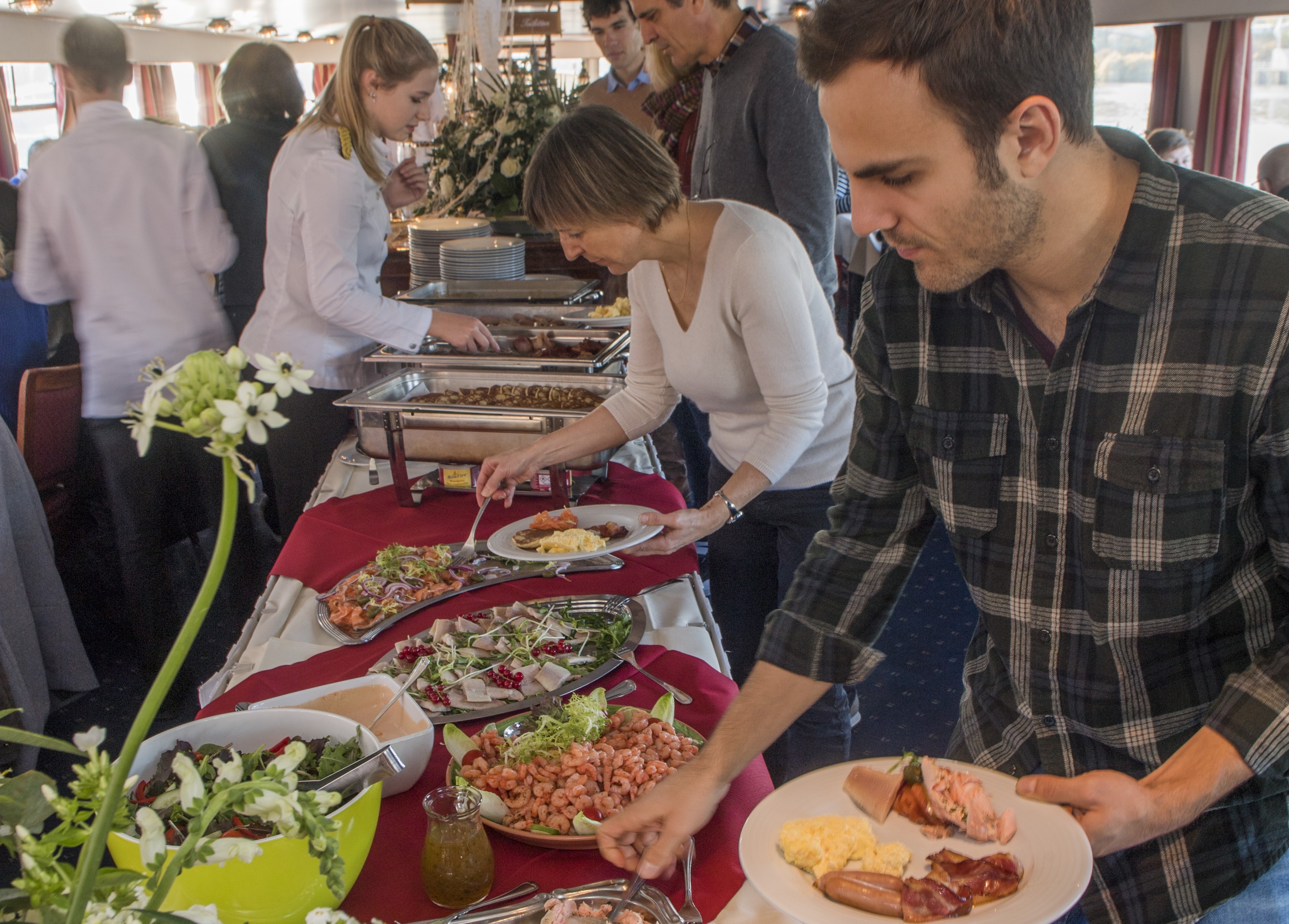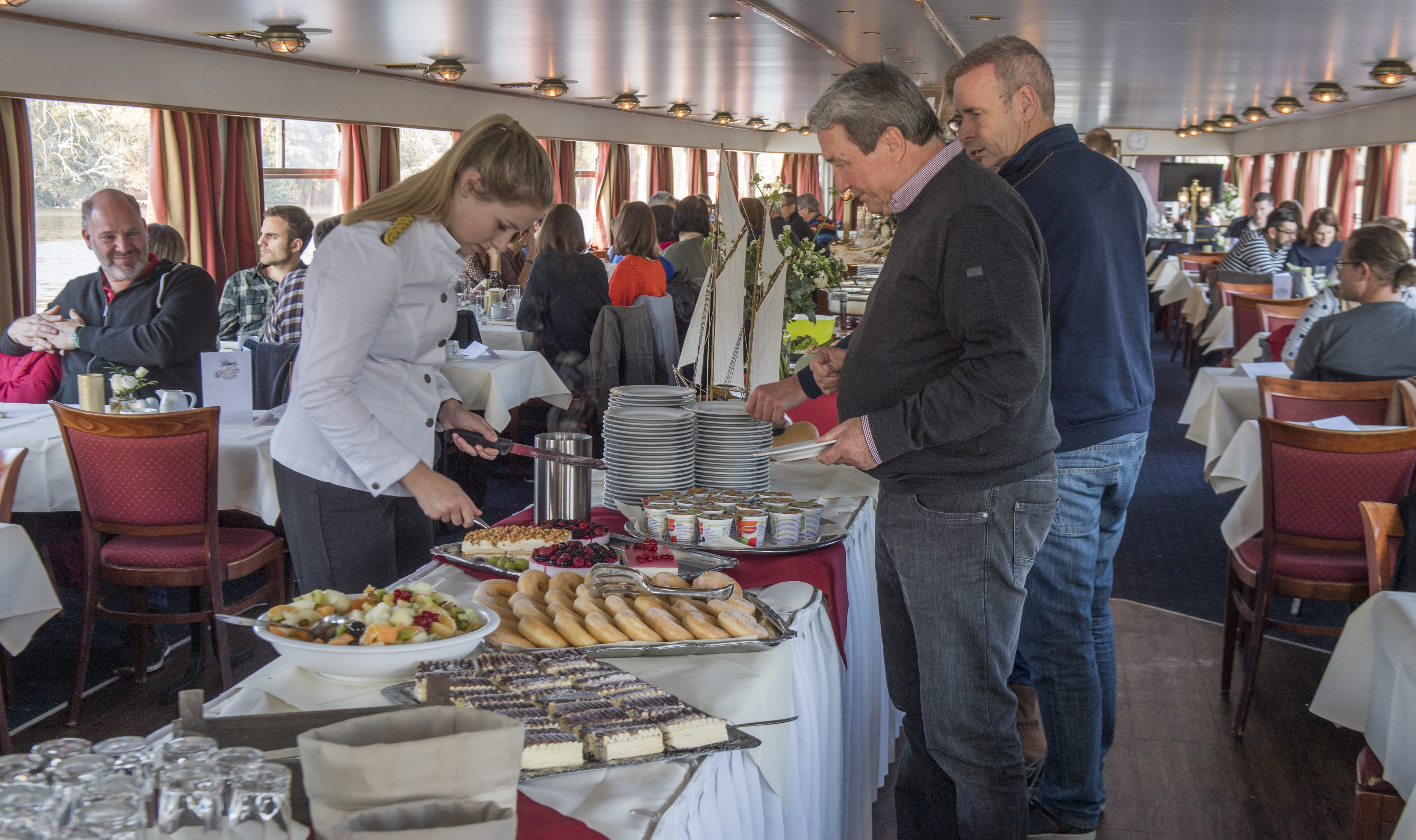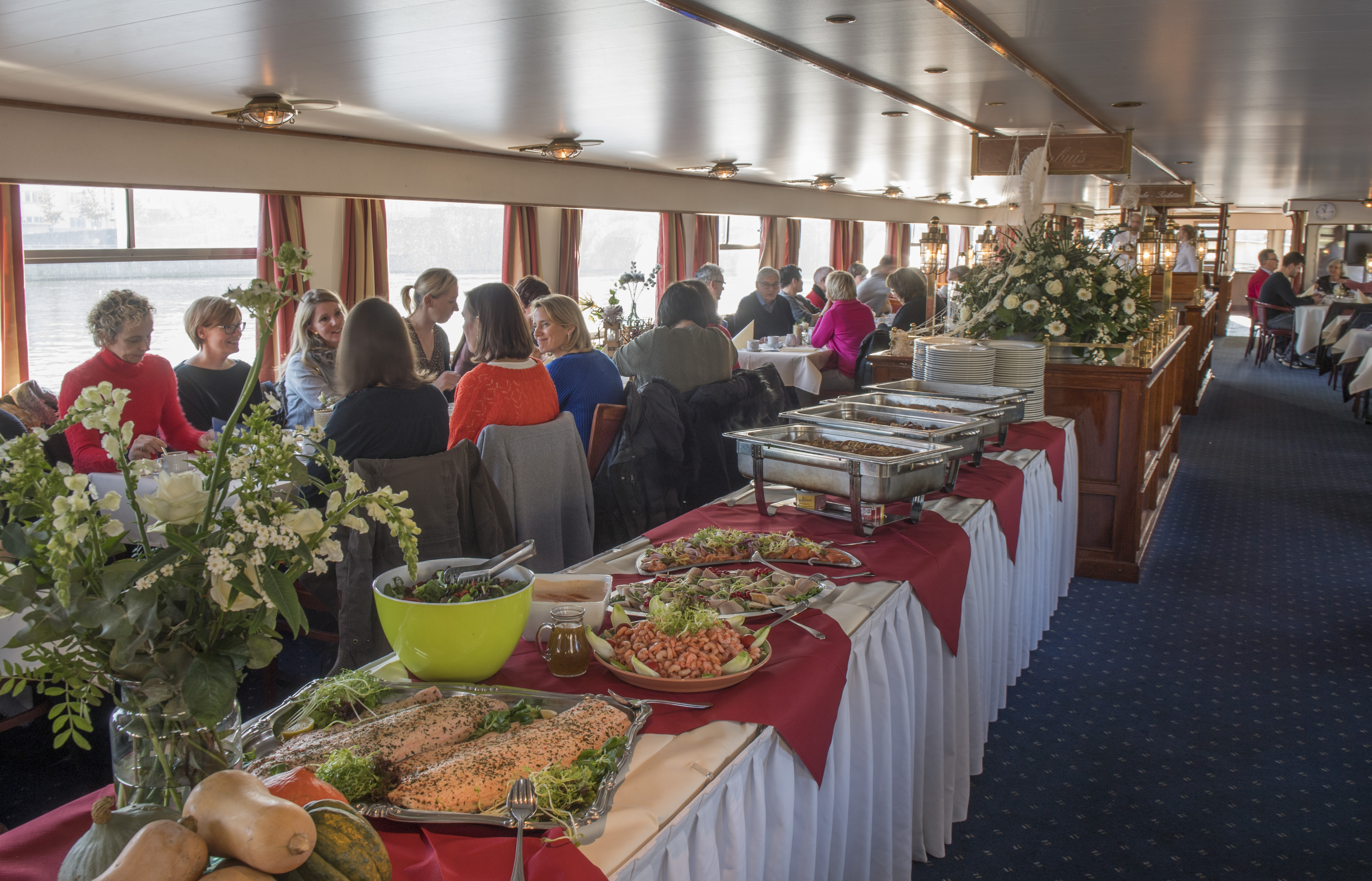 Le bateau t’emmène pour une belle croisière sur la Meuse. Pendant la traversée, l’équipage te propose un copieux buffet brunch avec différents plats chauds et froids. Le café et le thé sont inclus dans cette croisière.
